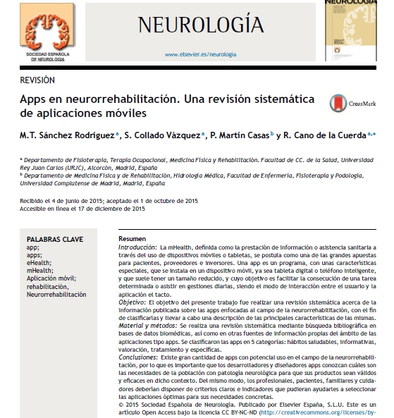 En los últimos años se han venido desarrollando tecnologías para proporcionar al paciente neurológico los elementos clave de un adecuado programa de neurorrehabilitación, y se han constituido como posibles medidas coadyuvantes del tratamiento. En este contexto, el sector sanitario tiene la posibilidad de transformarse para ofrecer servicios más individualizados, participativos y preventivos, mediante las posibilidades terapéuticas de dispositivos y tecnologías de bajo coste y fácil empleo, como son las aplicaciones móviles.