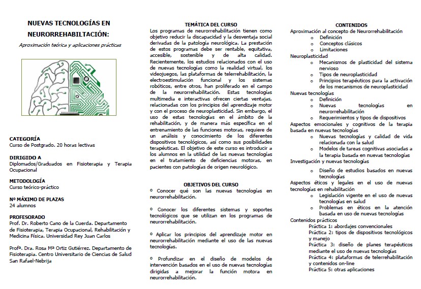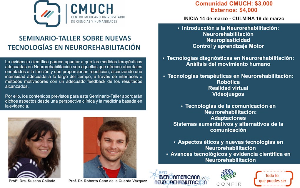 Nuevas Tecnologías en Neurorehabilitación. Aproximación teórica y aplicaciones prácticas. Informes sobre inscripción, programa, fechas y costos aquí.