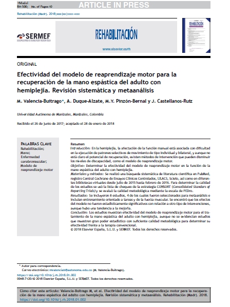 En la hemiplejía, la afectación de la función manual está asociada con dificultad en la ejecución de patrones selectivos de movimiento de tipo individual y bilateral, y aunque no está claro el potencial de recuperación, existen métodos de intervención que pueden disminuir los niveles de discapacidad, como el modelo de reaprendizaje motor.